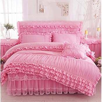 Frilly Bed Sets: 4 pcs flat sheet duvet cover pillowcase bedding set hoem bed frilly ruffled soft.